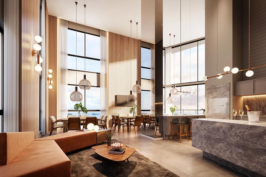 🔹 Hall social elegante – Design sofisticado desde a entrada.