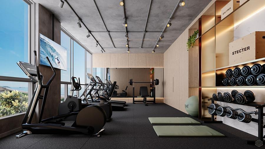 • Academia com equipamentos profissionais para manter sua rotina de treinos.