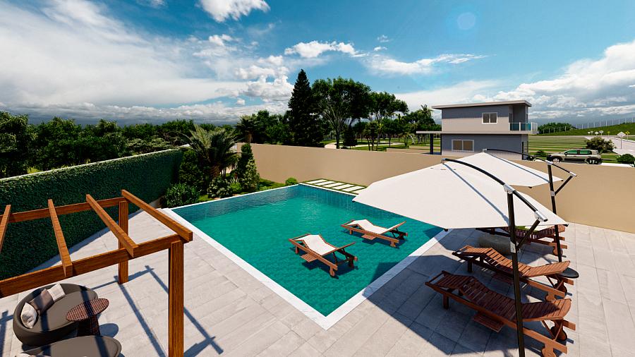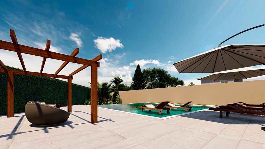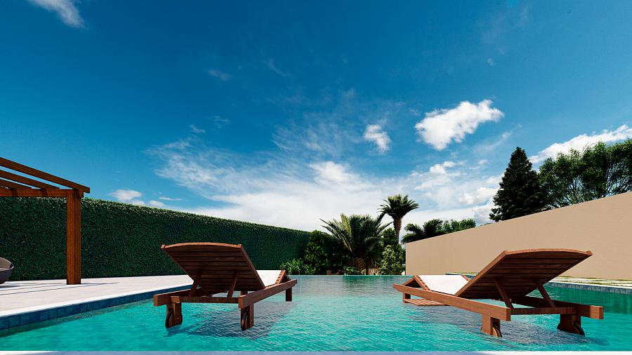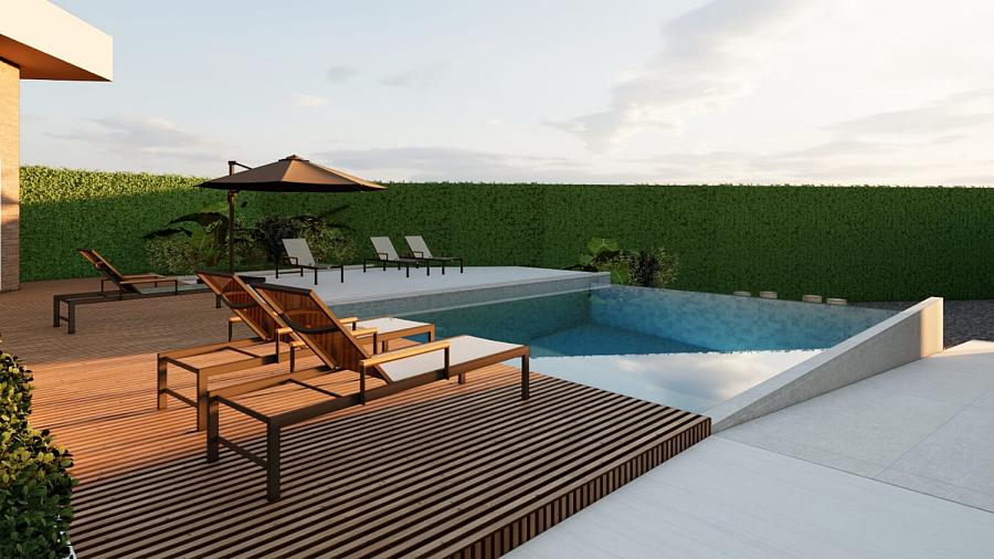 Piscina com borda infinita e deck molhado 🏊‍♂️