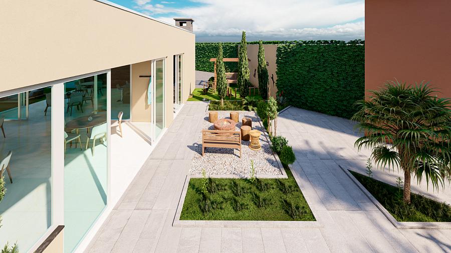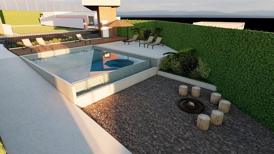 Espaço Zen, lareira e lounge externo 🔥🧘‍♂️